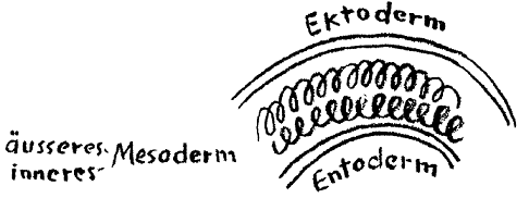 U smislu našeg pogleda na razvoj, moramo promatrati vanjski svitak klice, ektoderm, koji se u današnjoj anatomiji naziva i osjetilni sloj kože, kao proizvod transformacije koji pokazuje svoj prvi razvoj u vanjskom srednjem sloju, vanjskom mezodermu. Pri tome imamo pred sobom kao klicu ono što nam se pojavljuje na višoj razini u osjetilnom sloju kože. A u unutarnjem srednjem svitku, unutarnjem mezodermu, pred sobom imamo mlađu tvorevinu onoga što se kasnije pojavljuje u endodermu, u svitku crijevne žlijezde.