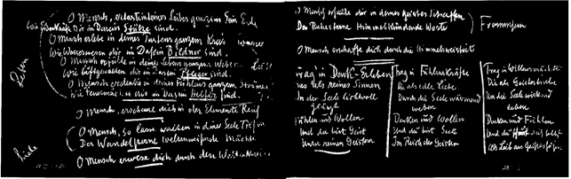 Moramo, gledajući u mirne zvijezde, pobožno sebi reći: tu počiva tvoja misao. Ali ja cijelo ovo zvjezdano nebo dovodim u pokret, kao što to inače osjećaj čini s planetima, polako pomičem zvjezdano nebo u duhu. Osjećam sebe kao da me zvjezdano nebo privlači; želim se uzdići, kao cijeli čovjek želim postati jedno sa zvjezdanim nebom. Tako sam u misli vezane za mirne zvijezde, ugradio osjećanje i volju.