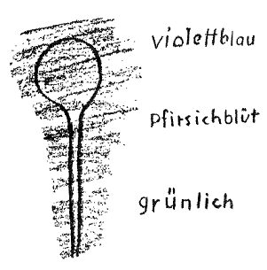 Ispod ljubičasto plavih područja obično se vidi nijansa o kojoj najbolje možete imati predodžbu ako je usporedite s bojom mladog cvijeta breskve. Između ove boje i zelenkaste boje donjih dijelova djelova kralježnice, imamo druge, neodređene nijanse boja u srednjem dijelu leđa, koje je izuzetno teško opisati jer se ne nalaze među uobičajenim bojama koje su nam poznate iz osjetilnog okruženja. Dakle, nakon zelene slijedi boja koja nije zelena, niti plava niti žuta, već kao mješavina sve tri; između mozga i kraja kralježnice pojavljuju se boje koje u osnovi uopće ne postoje unutar fizičkog osjetilnog svijeta. Iako je ovo teško opisati, jedno se može reći sa sigurnošću, da na vrhu te, da tako kažem, napuhane leđne moždine imamo ljubičasto plavu boju, a silazeći do kraja kralježnice dobivamo izrazito zelenkastu boju.