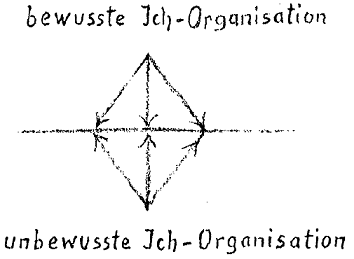 Uspjeli smo iz različitih perspektiva ukazati kako je ono što nesvjesno nosimo u sebi također na određeni način povezano s našim 'Ja'. Rekli smo za najmanje svjesni, naš koštani sustav, da je od samog početka organiziran na takav način da zapravo može pružiti osnovu za alate svjesnog 'Ja'. Na taj način nesvjesna 'Ja' organizacija raste iz nesvjesnog prema svjesnoj 'Ja' organizaciji. Za nas se čovjek dijeli na dva dijela: svjesna 'Ja' organizacija djeluje u čovjeku s jedne strane, a nesvjesna 'Ja' organizacija s druge strane (vidi crtež). U tom pogledu vidjeli smo da sustav krvi i koštani sustav čine određenu suprotnost, pojavljujući se kao suprotni polovi. Dok krv u svojoj unutarnjoj aktivnosti prati aktivnost 'Ja' kao pokretljivi instrument, drugi pol, koštani sustav, povlači se iz aktivnosti 'Ja' na takav način da o svemu što se događa u njemu 'Ja' nema svijest, to znači da se svi procesi koji se događaju u koštanom sustavu odvijaju potpuno ispod površine stvarnih svjesnih 'Ja' događaja. Iako su ti procesi oni koji odgovaraju našoj 'Ja' aktivnosti, oni su jednako mrtvi kao što su naši procesi krvi živi; stoga su u osnovi onog dijela procesa koji za 'Ja' ostaju nesvjesni i tek se postupno iz nesvjesnog uzdižu u svijest.
