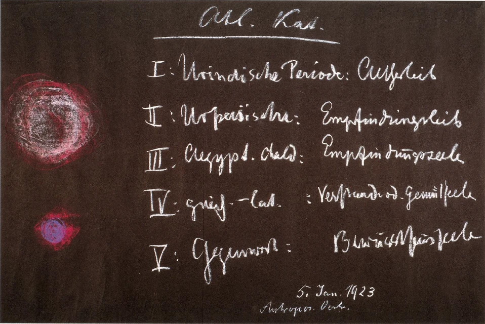 Ako uzmemo u obzir uzastopne epohe Zemljine evolucije nakon velike atlantske katastrofe, to je sljedeće: ako se vratimo u 8. i 9. tisućljeće, imamo atlantsku katastrofu, koju sam često opisivao. Zatim imamo prvo post atlantsko kulturno razdoblje, o kojem možete čitati u mom djelu 'Okvir tajne znanosti', koje sam nazvao drevnim indijskim razdobljem (vidi dijagram).