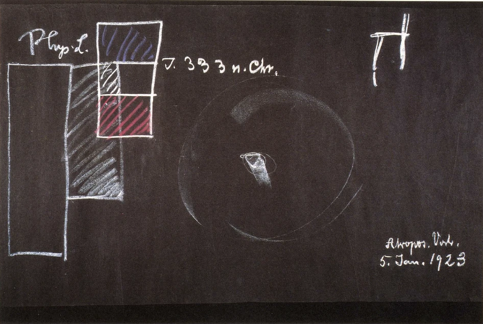 Primjećujete: dvije vremenske točke se ne podudaraju. Vremenska točka otajstva Golgote - kako nam danas izgleda kada se osvrnemo na nju? Moramo reći: u ovoj vremenskoj točki, Krist, vrhovno biće Sunca, prolazi kroz otajstvo Golgote i sjedinjuje se sa zemaljskom egzistencijom. Popularno rečeno: od te vremenske točke Krist je na Zemlji. Vidjeti duha Sunca ljudima je bilo moguće do 4. stoljeća poslije Krista, jer su do tada bili intimnije povezani sa svojim eterskim tijelom, ili tijelom formativnih sila.