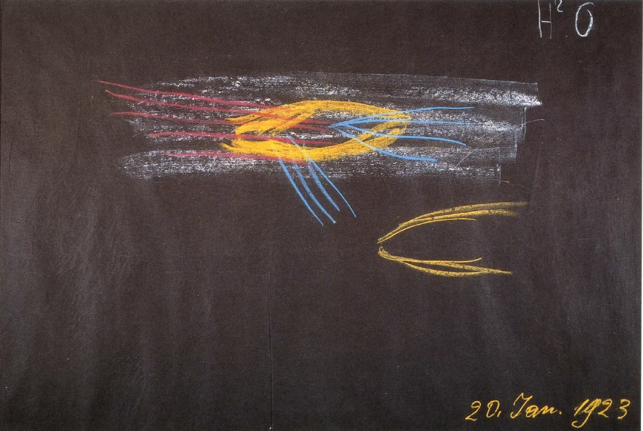 Dok riba pliva prema meni, takoreći, pružajući zube, ako smijem tako reći, ali ova prozirna, zagrijana voda, svojim ritmom disanja, polaže svoju meku tjelesnu supstancu preko čeljusti, dok riba, s neobičnim načinom na koji je oblikovana njezina glava, pruža prema meni svoje prekrivene čeljusti, osjećam kako mi prozirna i zagrijana voda dolazi s ovom ribom. A onda osjećam kako nešto drugo djeluje s druge strane, u strukturi peraja (plavo). Tako učim - danas to želim samo nagovijestiti - postupno osjećati kako u repnoj peraji i ostalim perajama postoji prigušeno svijetlo, svijetlo toliko prigušeno da više ne prisiljava tjelesnu supstancu da omekša, kako ima učinak otvrdnjivanja. Tako postupno učim prepoznati element Sunca u onome što mi riba predstavlja, u svojoj glavi, učim prepoznati element Mjeseca u otvrdnutim strukturama peraja, kako zrače natrag, ukratko, mogu smjestiti ribu unutar cijelog elementa vode.