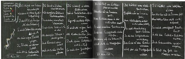 i onoga, što smo oduvijek suhim, apstraktnim izrazom, nazivali kemijskim eterom i njegovim učincima. Danas, budući da je to ono što dovodi do poretka, uzrokuje oblikovanje svijeta, veliku kemiju kozmosa želimo nazvati oblikovanje svijeta. Teško je pronaći točan izraz za ovo [iznad 'Svijetlo' je napisano]: